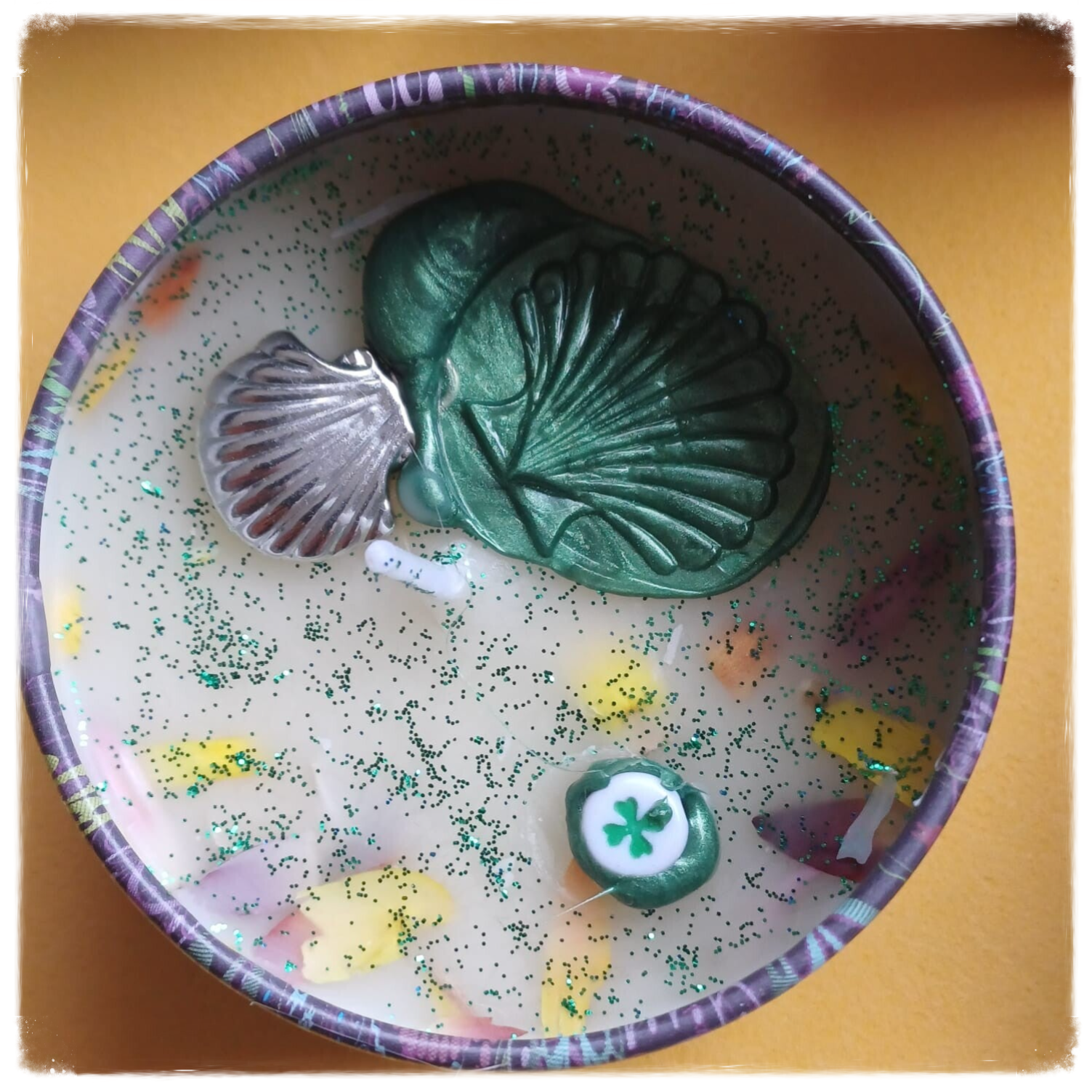 Vela aromática decorada en cajita metalica 4cm de alto y 6cm diametro